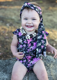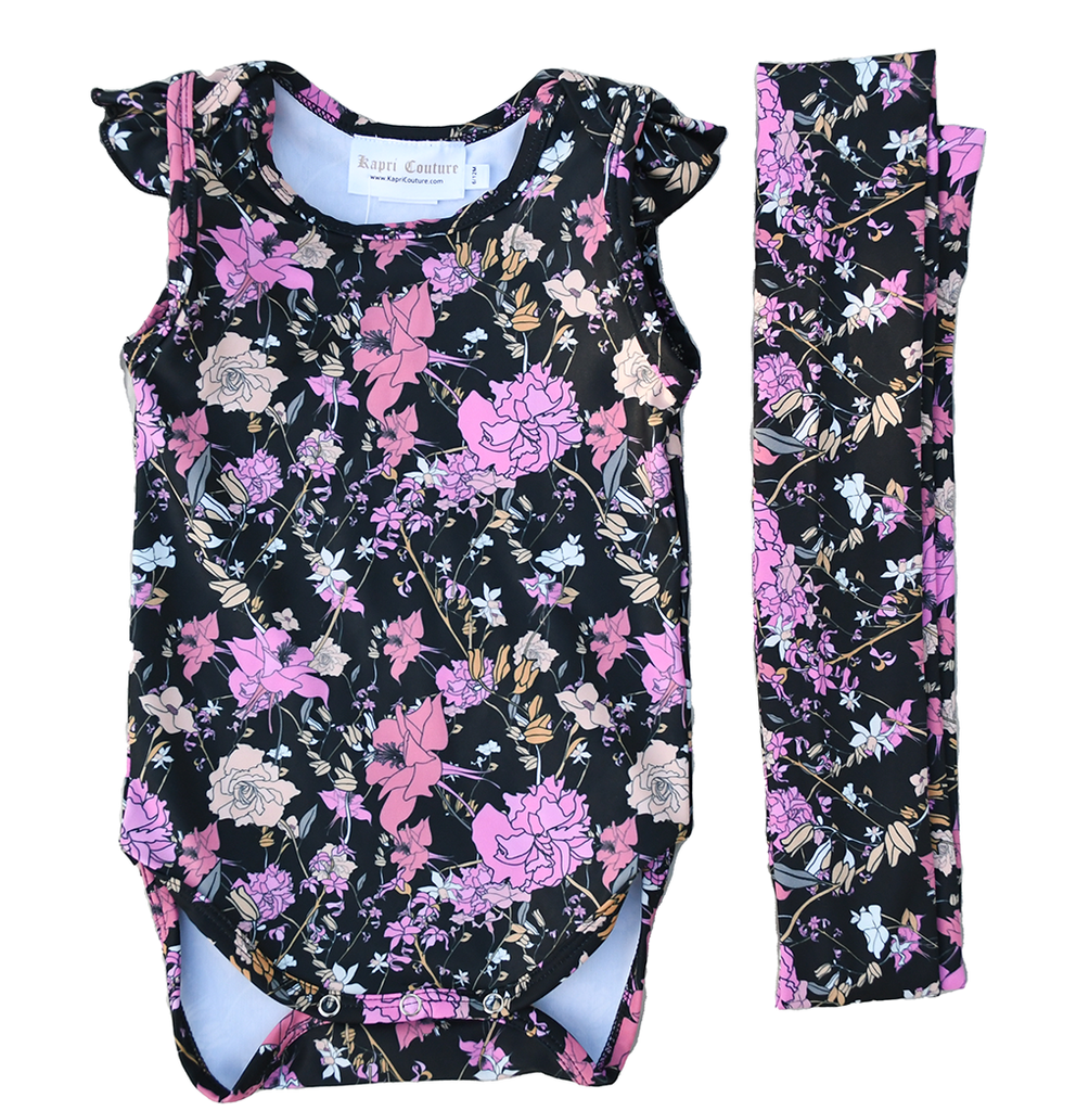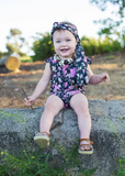 Let your little flower shine in this Flower Gypsy Set that makes a splash! The baby onsie and matching head wrap in pink and black will turn your girl into a swim and playsuit pro! All she needs is a little gypsy spirit to complete the outfit!