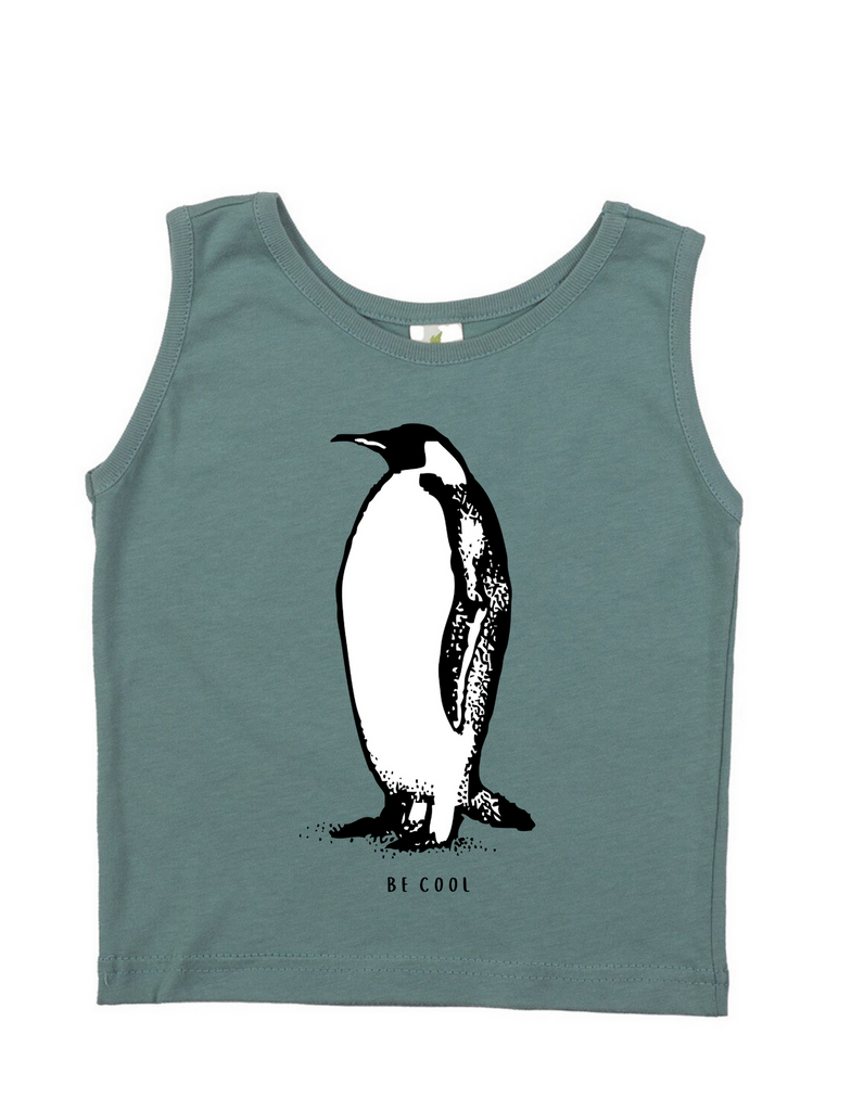 A fun organic tank with a cute penguin reminding your little one to Be Cool.