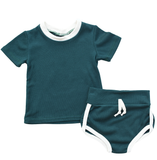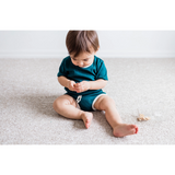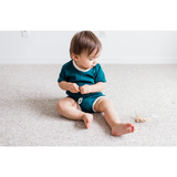 Let your little one come out of the gate in style with this track set! Bright and gender neutral, this deep teal set is the perfect addition to your summer wardrobe. Made of stretchy materials, it's perfect for babies and toddlers alike. Get ready to rock n' roll!
