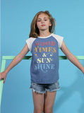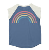Uplifting, adorable top by Junk Food Clothing Co. "Good Times & Sun Shine" on the front and an awesome rainbow on the back.