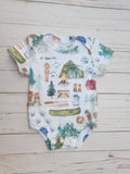 This charming bodysuit showcases a delightful camping theme, perfect for gearing up for summer adventures in the great outdoors. Designed to fit true to size, it promises year-round comfort and style for your little one. Compliant with all CPSC guidelines, it features a 100% cotton knit fabric that has been prewashed with dye and scent-free soap, ensuring it's ready to be worn straight out of the package, making it an ideal choice for your camping-ready infant.