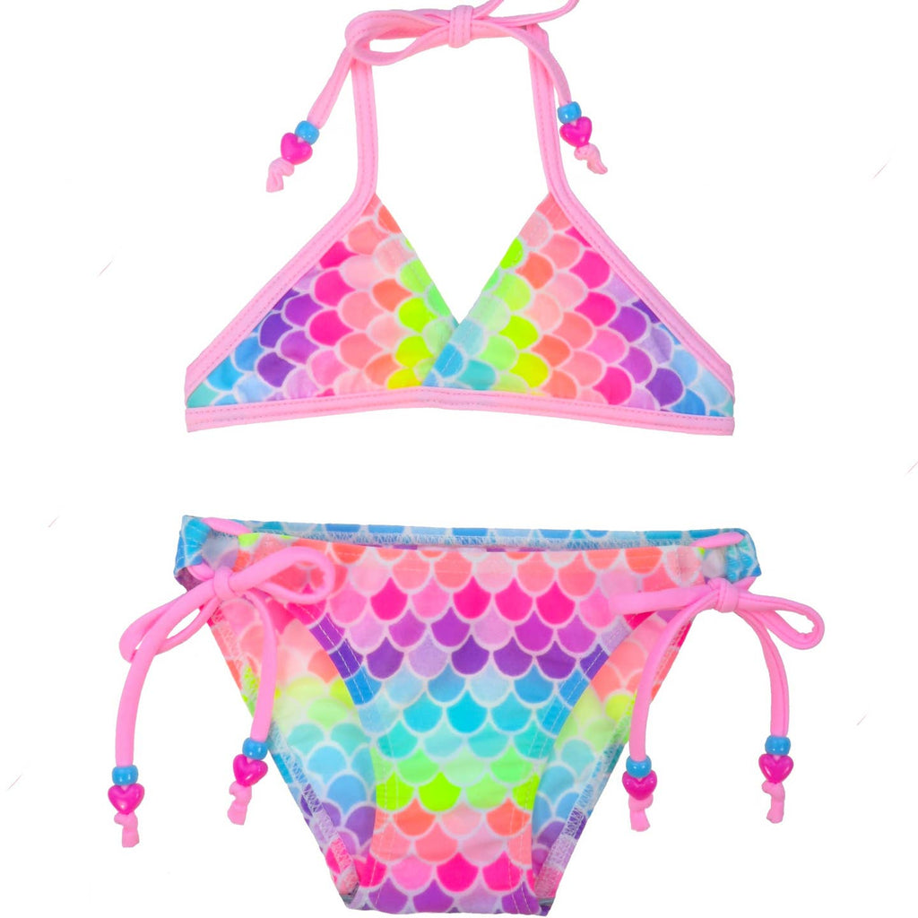 I'm under the impression that there's a little bit of mermaid in all of us gals. I say let's embrace it! The vivid colors in this bikini are complimented with pink and blue beads on the end of the straps.