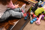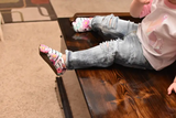 The rubber sole is very soft, yet has enough traction for new walkers. The fact that there's no right or left shoe makes dress time fast and easy.
