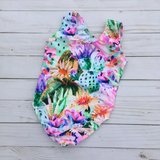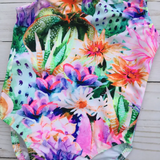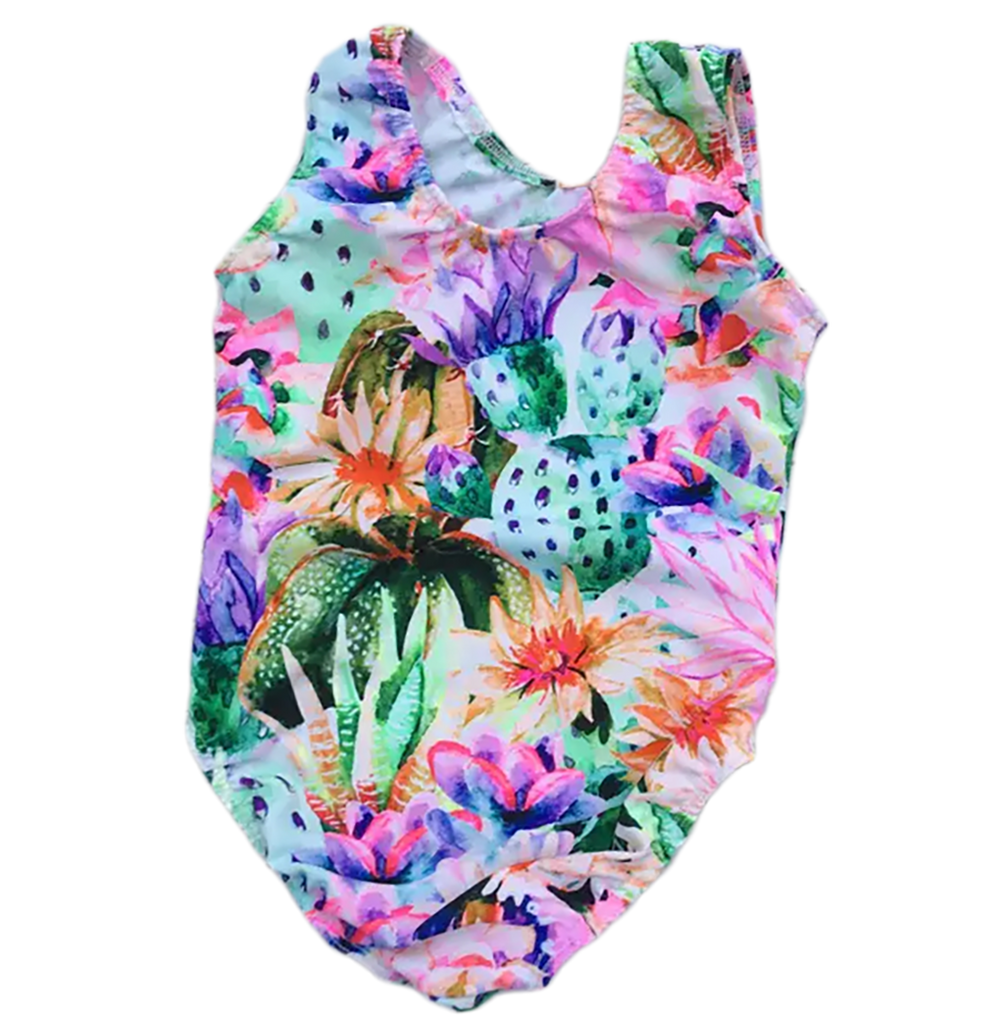 Introducing the Cactus Leo - the spiciest leotard in the gym! Perfect for gymnastics, swimming, or just loungin' around, this cactus-inspired one-piece features a juicy pink and green watercolor print that will turn heads! So go ahead and get prickly - with Cactus Leo, you'll always stand out!