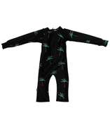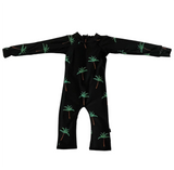 This full body swimsuit is the perfect pick for your mini eco-warrior! Made from recycled material and UV protected, thumb holes in the sleeves for added coverage, chlorine resistent, non see through, your little one can rock a bold, palm tree print in style - all while saving the planet! Let your baby or toddler look cool while staying safe in the sun. Eco-friendly never looked so good!
