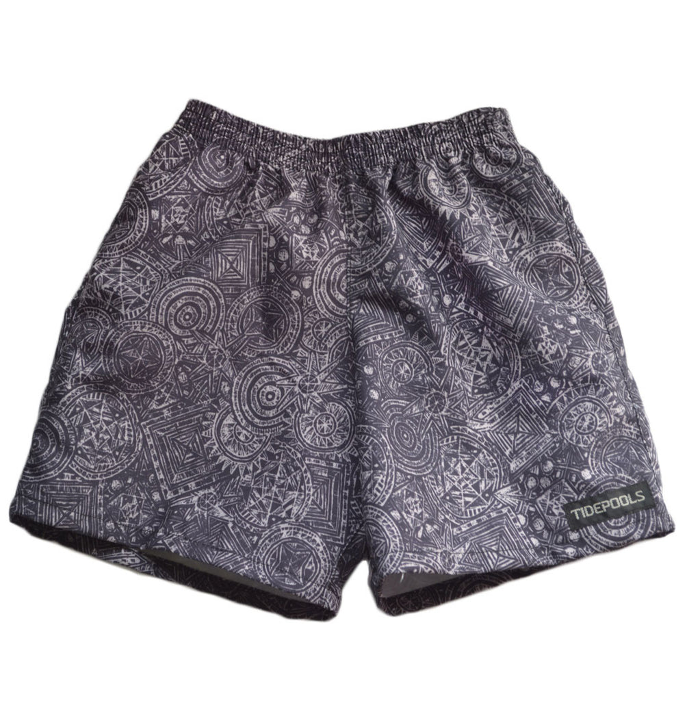 Introducing the Sundial Swim Trunks! For the kids who want to have their fun in the sun - and mark the time, too! They'll be ready to hit the beach, pool, or lake in these durable, black trunks with a sundial print. Lookin' for summer style? These trunks have you covered!